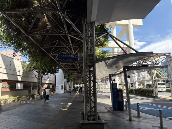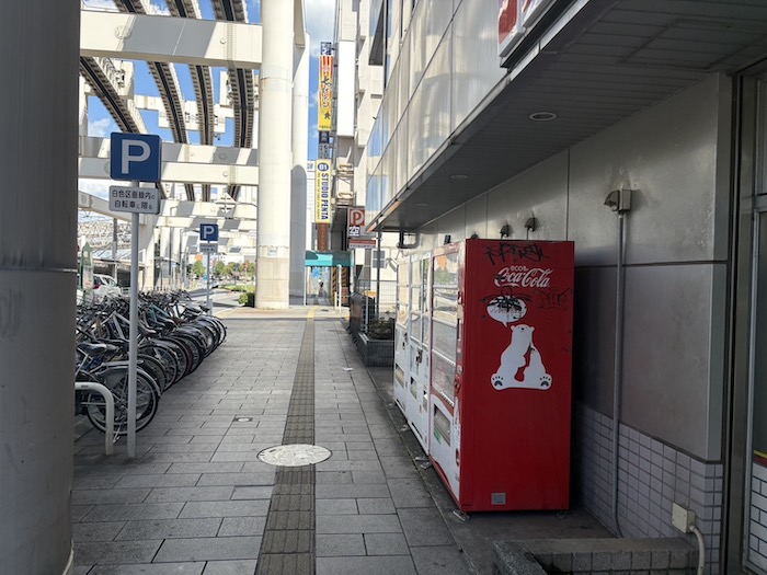 頭上のモノレール線路沿いに進みます。