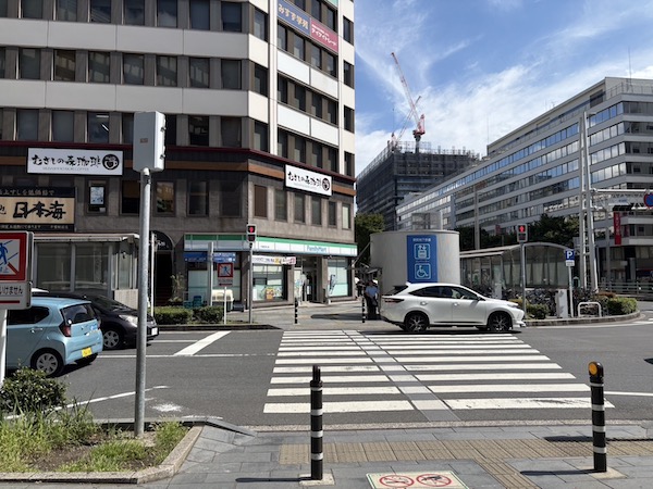 ファミリーマートが見えてきますので手前の横断歩道を渡ります。